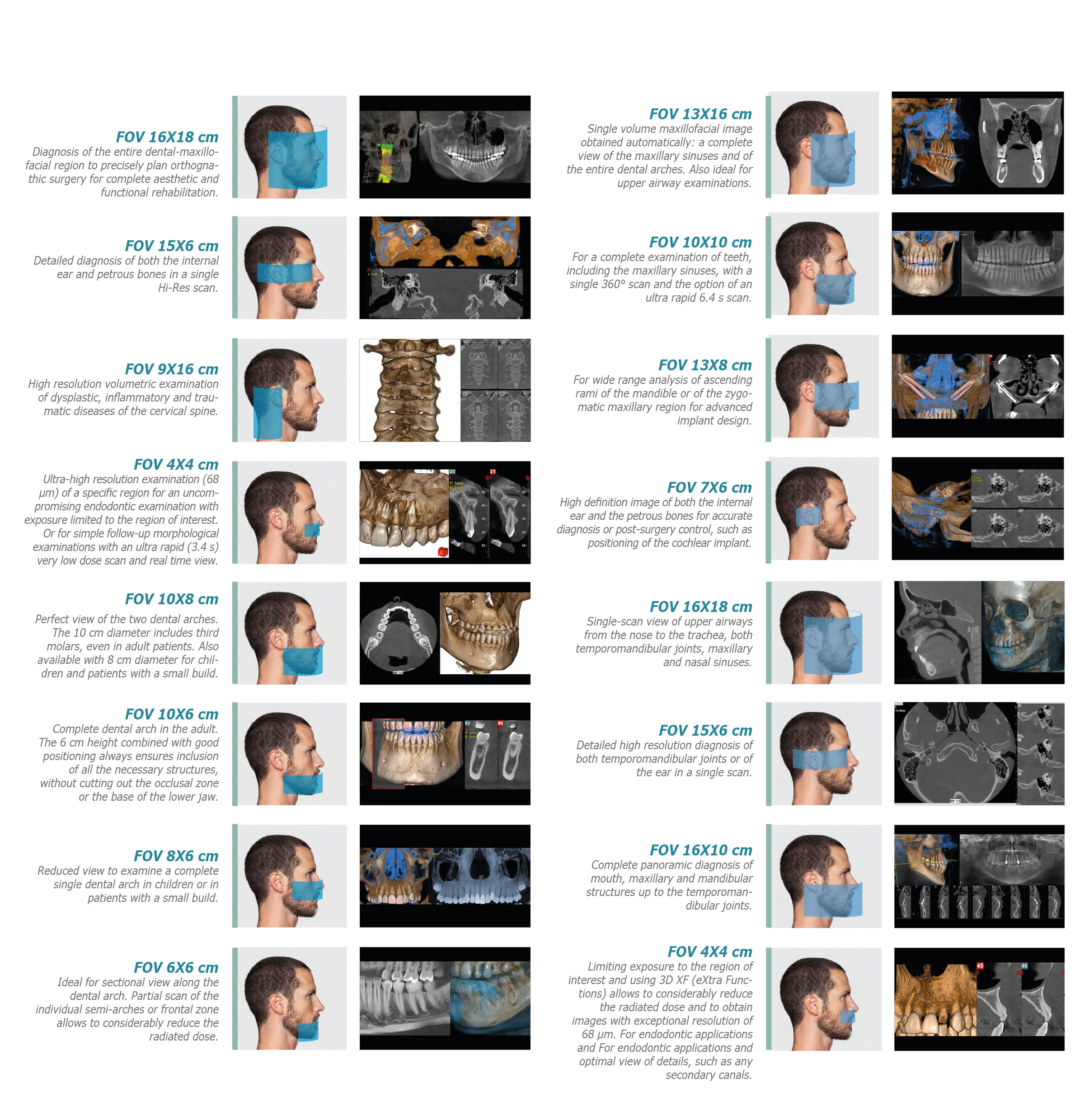 Εξεταστικά πρωτόκολλα τριών διαστάσεων 3D και δύο διαστάσεων 2D με απειροελάχιστη ακτινοβολία και ευκρίνεια που είναι η υψηλότερη αυτήν την στιγμή στην αγορά, συνθέτουν μία εξέταση που διαρκεί μόλις μερικά δευτερόλεπτα!